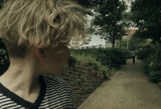 ”Det fortæller alt om, hvordan drengen har det. Det er drengen, der er lys på, og i stedet for, at også moren er oplyst, har det været vigtigt for mig, at moren er en skygge og en silhouet i horisonten. Hun er i forsvindingspunktet, og han bliver draget og tiltrukket af hende. Alle linjer peger mod hende: stensætningen, der går ud i en spids, stien, buskene. Det står meget klart for os, hvad han gerne vil have.”