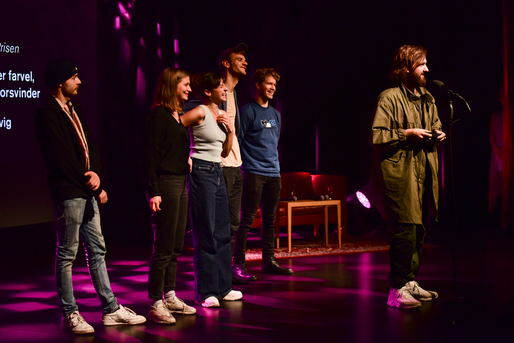 Vinderen af Publikum Prisen Jonas Risvig tog sit hold fra ungdomsfilmen Ingen siger farvel, men alle forsvinder med op på scenen.