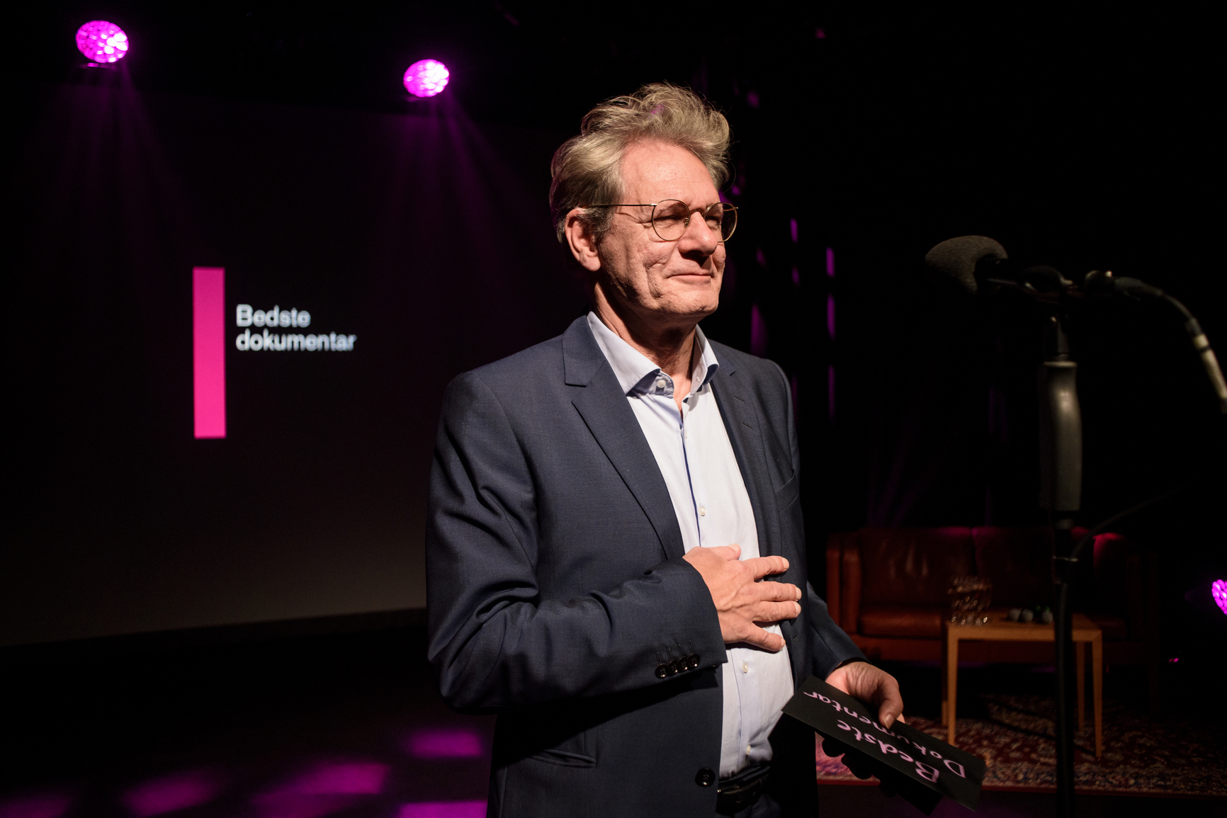 Publikum rejste sig i salen, da en voldsomt populær mand viste sig for at uddele prisen til bedste dokumentar ved Ekko Shortlist Awards.