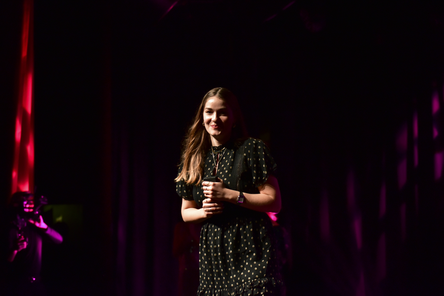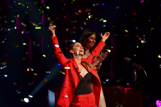 Som afslutning på prisuddelingen kunne førstegangsinstruktøren lade sig hylde af klapsalver, mens sejrskonfetti dryssede ned over hende.