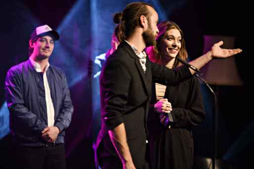 Dar Salim og Marijana Jankovic underholder salen med en sjov optræden om deres evner som skuespillere, inden de uddeler prisen for bedste kvindelige skuespiller.