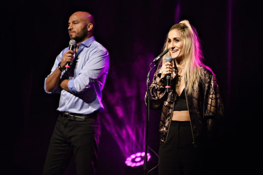 Dar Salim og Marijana Jankovic underholder salen med en sjov optræden om deres evner som skuespillere, inden de uddeler prisen for bedste kvindelige skuespiller.