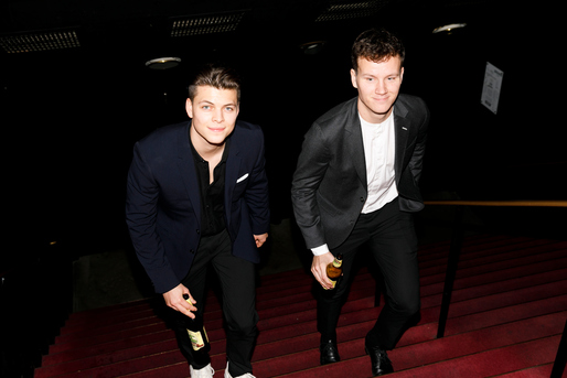 Vikings-stjernen Alexander Høgh Andersen (tv.), der sammen med blandt andet Mikkel Hjort Pedersen (th.) vandt Publikum Prisen i 2017 for Koldt på toppen, er kommet igen for at uddele årets pris i samme kategori.