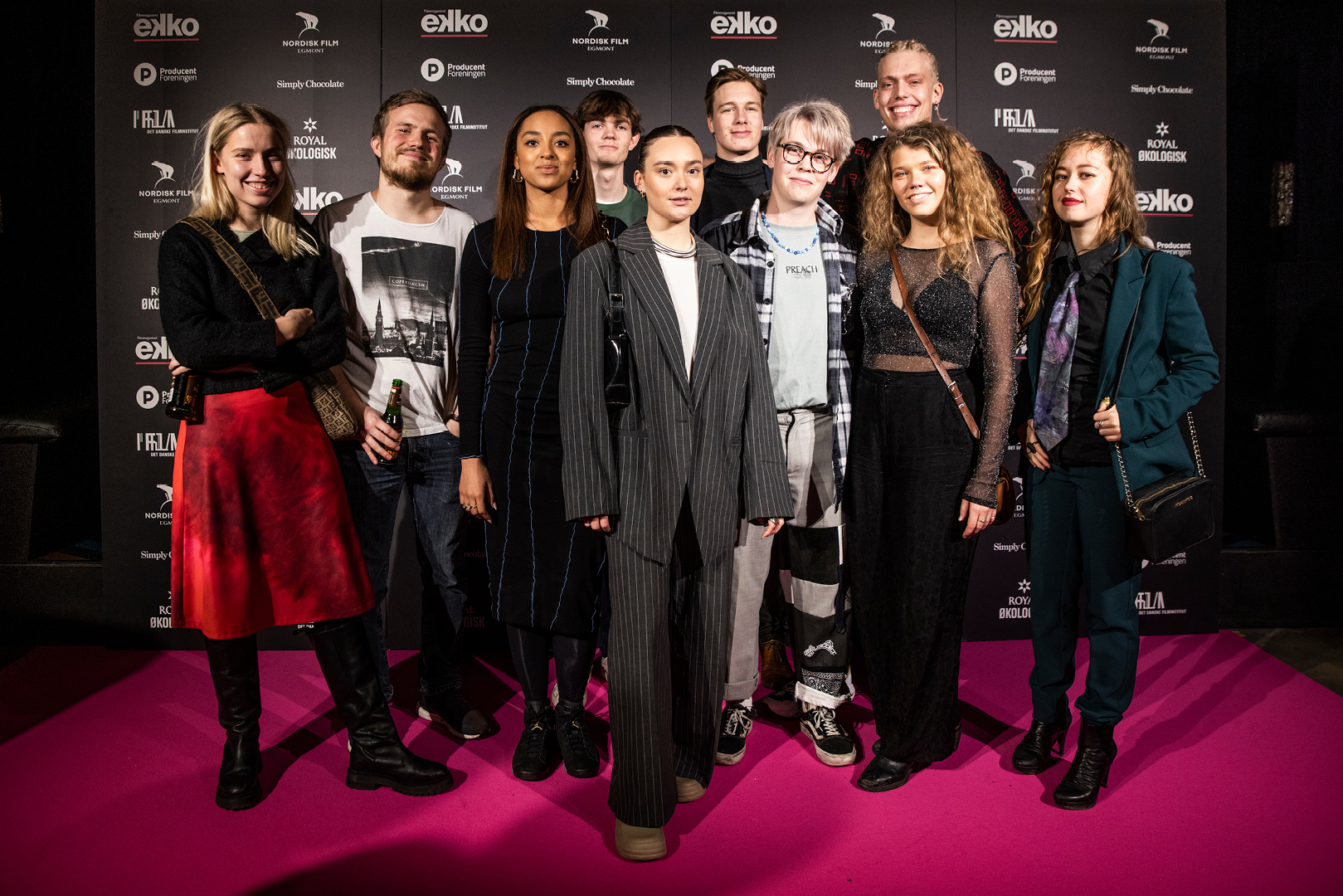 Det store hold bag Amourteur ligner vindere allerede ved ankomsten, og de skulle da også vise sig at hjemtage tre priser fra festen. Fra venstre er det skuespilvinder Marta Holm, Emma Lagrelius, Alvin Olid Bursøe, Stine Primdahl, manuskriptvindere Mads Lind Knudsen og Sylvia Le Fanu (med fotografvinderen Jan Bastian Muñoz Marthinsen i skjul bag sig), Stefanie Munch, Camilla Silvana Navarro Howalt og Jeppe Wowk.
