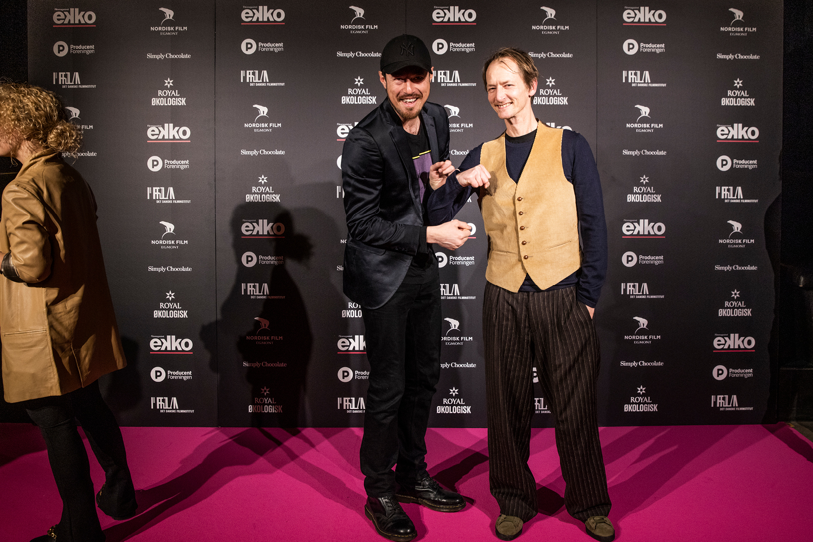 Skuespilleren Rasmus Hammerich (th.) medvirker i mange kortfilm på Ekko Shortlist, deriblandt flere af de nominerede ved årets prisfest. Han indtager den røde løber i cowboybukser sammen med en ven.