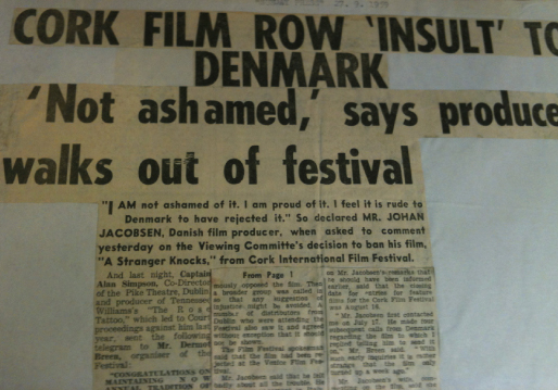 ”The future history of this film will, we are sure, fully justify the decision of the Screening Committee,” mente formanden Riobard Breathnach. Corks borgmester Jane Dowdall bakkede komitéens filmsagkyndige op. Hun havde godt nok ikke selv set det omstridte værk, men havde fuld tillid til den foretagne faglige vurdering: ”We are heavily booked with films but even if we were not we would not show this film which, apart from being objectionable, is not up to the standard of films we wish to show here. We have some excellent Danish films. The one we rejected is not one of them and no amount of pressure will make us show it” (Irish Independent, 26.09.1959).