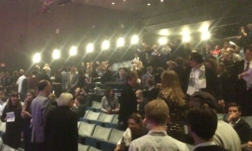 "Jeg vil gerne sige tak til instruktør Mads Riisom og til Patricia Schumann, der spiller med i Debut," siger Crosset Hove fra scenen.