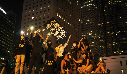 De unge demonstranter benyttede sig af paraplyer, gasmasker og laserpenne, da de modstod gas- og vandkanonangreb fra Kinas sikkerhedsstyrker.