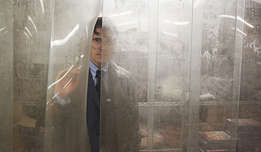 Han står i et kølerum iført et skarptskåret jakkesæt og et par kliniske briller, som han næppe er den første seriemorder til at bære. Men ellers ligner han en almindelig, distingveret mand og ikke en dæmon.