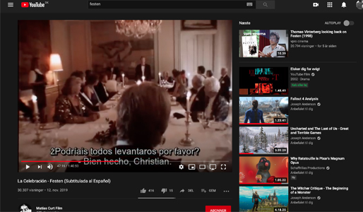 Thomas Vinterbergs dogmefilm Festen kunne findes på YouTube med spanske undertekster og under titlen La Celebración.