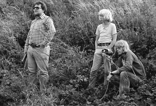 Lasse Nielsen (th.) under optagelserne af debutfilmen La’ os være (1975), hvor han instruerede en række børn i en historie inspireret af Fluernes herre (foto: Carsten Nielsen).