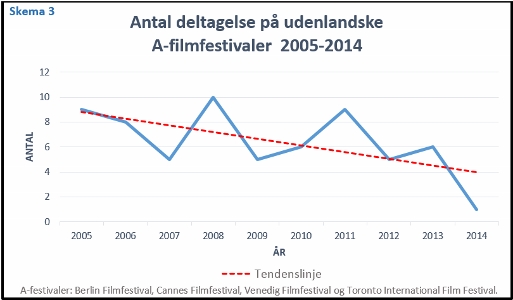 Tendensen er den samme, hvis vi udelukkende ser på mest betydningsfulde festivaler, de såkaldte A-filmfestivaler: Cannes, Berlin, Venedig og Toronto (skema 3).