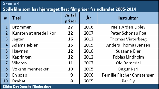 Antallet af festivaler og priser giver dermed et billede af, hvordan man betragter dansk film i udlandet. Har filmene kunstneriske kvaliteter, der løfter dem ud over det nationale og gør dem interessant for et internationalt publikum?