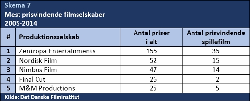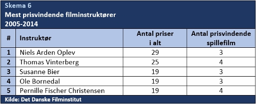 Herunder ses de mest prisvindende film, instruktører og selskaber i perioden 2005-2014.