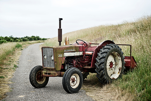 Den 2,4 ton tunge traktor skulle køre op ad et dige ved Vadehavet, men det gik galt, og Bodil Jørgensen faldt ind under køretøjet (foto: Christer Holte).