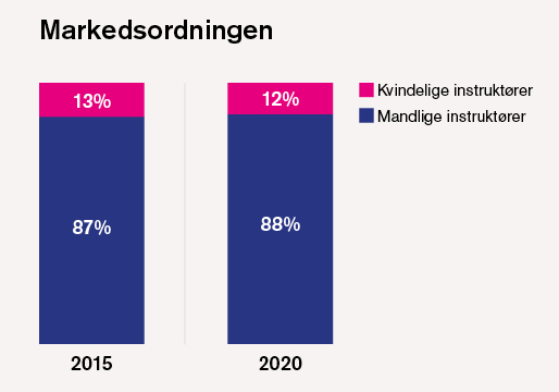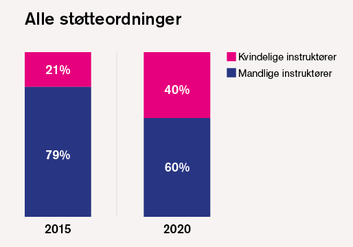 Fem år tidligere – i 2015 – var der blot 21 procent kvindelige instruktører, som altså har oplevet en fordobling.