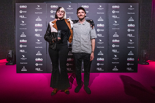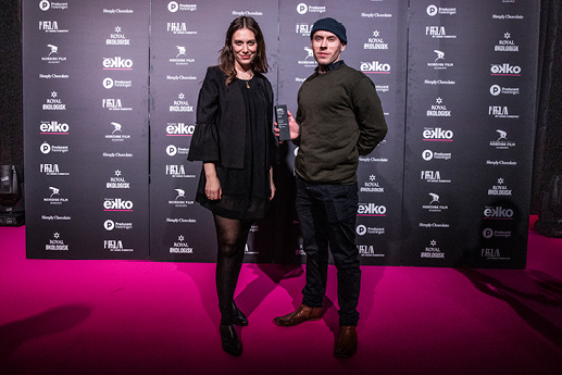 Amourteur blev en af aftenens store vindere med hele tre priser. Her ses instruktøren Sylvia Le Fanu sammen med Mads Lind Knudsen, som hun har skrevet det levende manuskript sammen med.