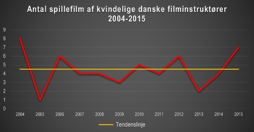 I årene 1976-2015 kan konstateres en stigende tendens i antallet af film instrueret af kvinder, men når man isoleret ser på årene 2004-2015 er udviklingen stoppet (se skema). Der er dog ikke tale om en vigende tendens, men blot status quo.