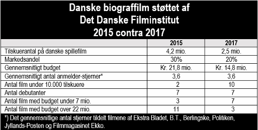 For at anskueliggøre omfanget af lavbudget-initiativets negative indvirkning på dansk film kan man blot kaste øjnene på forskellene mellem rekordåret 2015 og katastrofeåret 2017 i nedenstående skema.