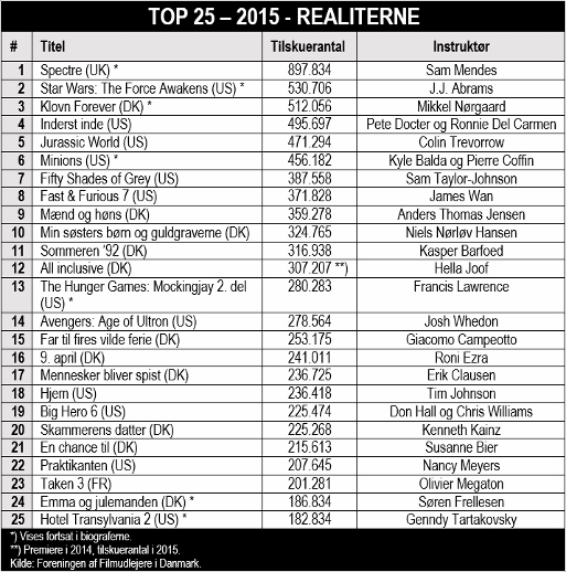 Her er min spådom i blog fra 8. december 2014, og nederst er de 25 film, som har solgt flest billetter.