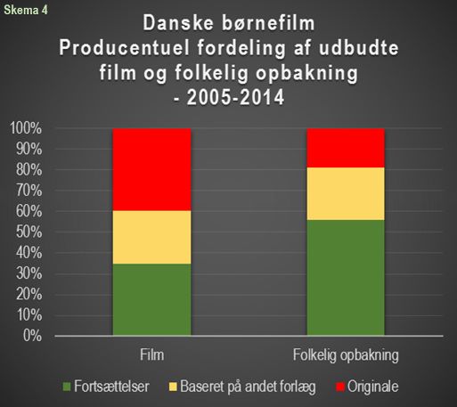 I skema 4 kan man se, hvordan publikum søger væk fra de originale film og hen til fortsættelserne, til trods for at der er flere originale film end fortsættelser. Film baseret på andet forlæg bliver i al væsentlighed påskønnet af publikum i samme grad som udbuddet på markedet.