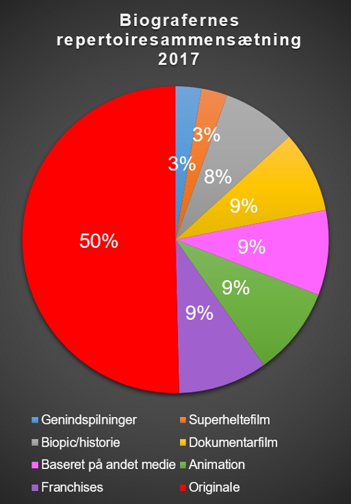 Det kan man forvisse sig om i nedenstående skema, hvor det også afsløres, at halvdelen af filmene på biografrepertoiret er originale!