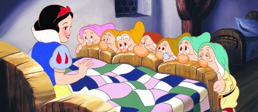 Walt Disneys tegnefilm efter brødrene Grimms eventyr krævede ikke mindre end seks instruktører og otte manuskriptforfattere at forløse. Filmen var den første amerikanske tegnefilm i spillefilmlængde og er verdens mest sete. Verdens første tegnefilm i spillefilmlængde var argentinske El apóstol fra 1917 af Quirino Cristiani.